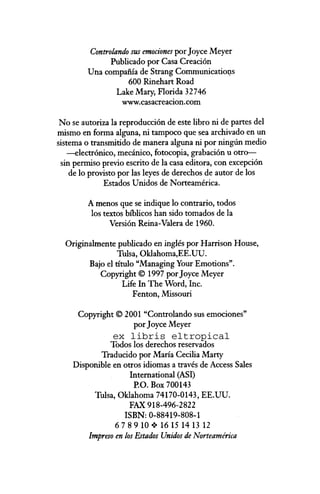 Web Controlando sus emociones por Joyce Meyer Publicado por Casa Creación Una compañía de Strang Communications 600 Rinehart Road Lake Mary Florida 32746. Web Controlando Tus Emociones Joyce Meyer Pdf Free by Davonclaeb released 15 October 2016 Controlando Tus Emociones Joyce Meyer Pdf Free -. Web Controlando sus emociones poroyce Meyer Publicado por Casa Creación Una compañía de Strang Communicatios 600 Rinehart Road Lake Mary Florida 32746 No se autoriza.